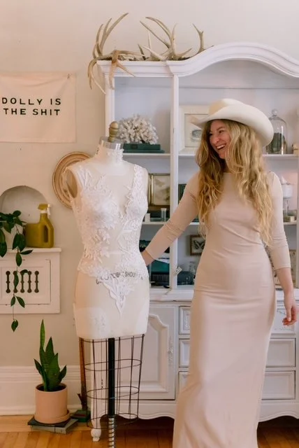 We mock up your piece directly on a dress form! We look through past work and other inspiration you’re drawn to and have conversations about design elements, your likes/dislikes to create something one-of-a-kind JUST for you!